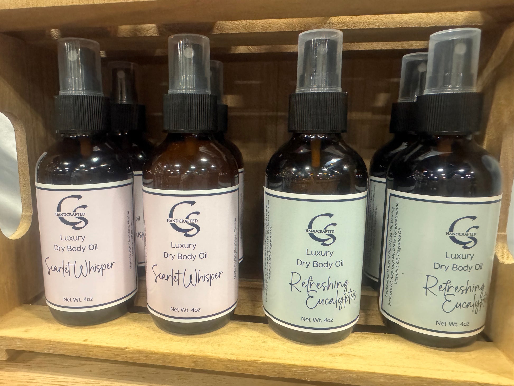 Elevate your skincare routine with our dry body oil. Our handmade dry body oil is designed to provide hydration without the greasy feel. Formulated to absorb quickly into your skin without any oily residue, it is perfect for everyday use. Each bottle is handcrafted in small batches to ensure the highest quality and freshness, providing a truly artisanal skincare experience. Ideal for use all over your body, our dry oil can be applied t damp or dry skin, and is perfect for layering with other skin products or using as a stand alone moisturizer.